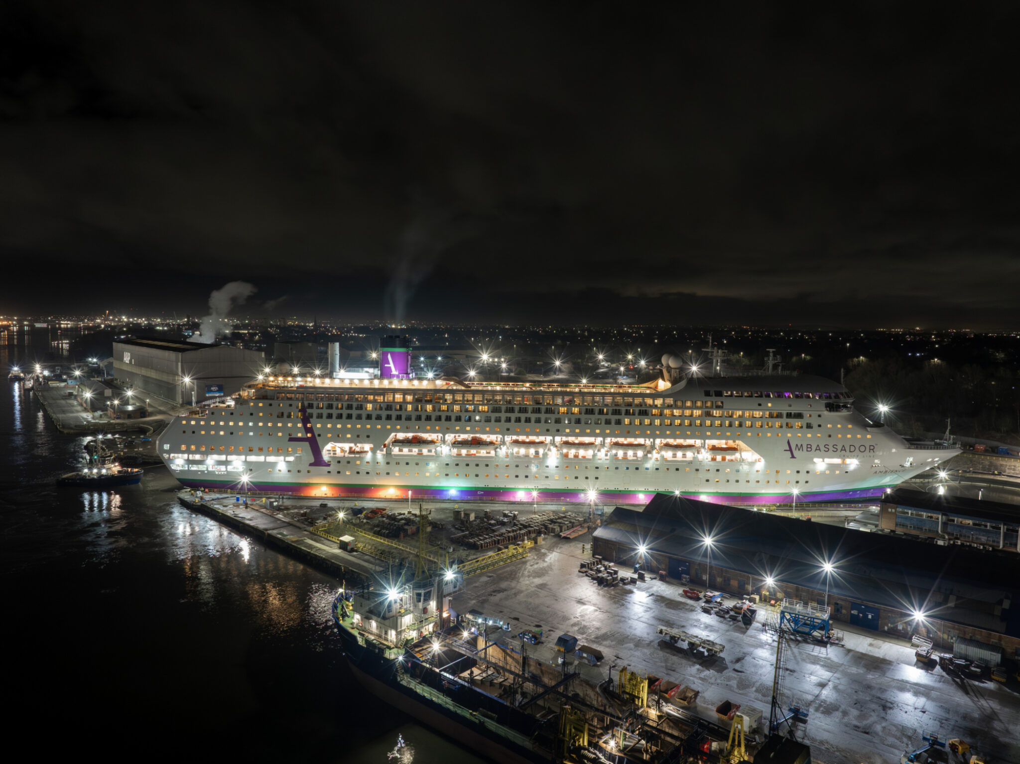 Nick Hughes, Chief Operating officer at Ambassador Cruise Line, said: “The Ambience’s dry dock in Hebburn represents a significant investment in our first lady of the sea and underlines our long-term commitment to maintaining the highest technical and hospitality standards across our fleet.”